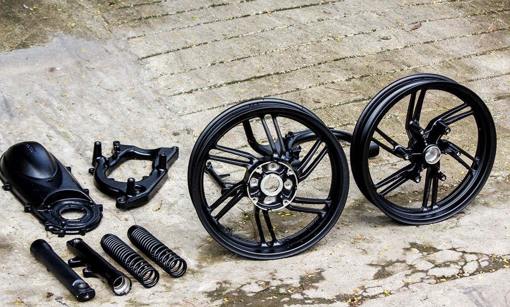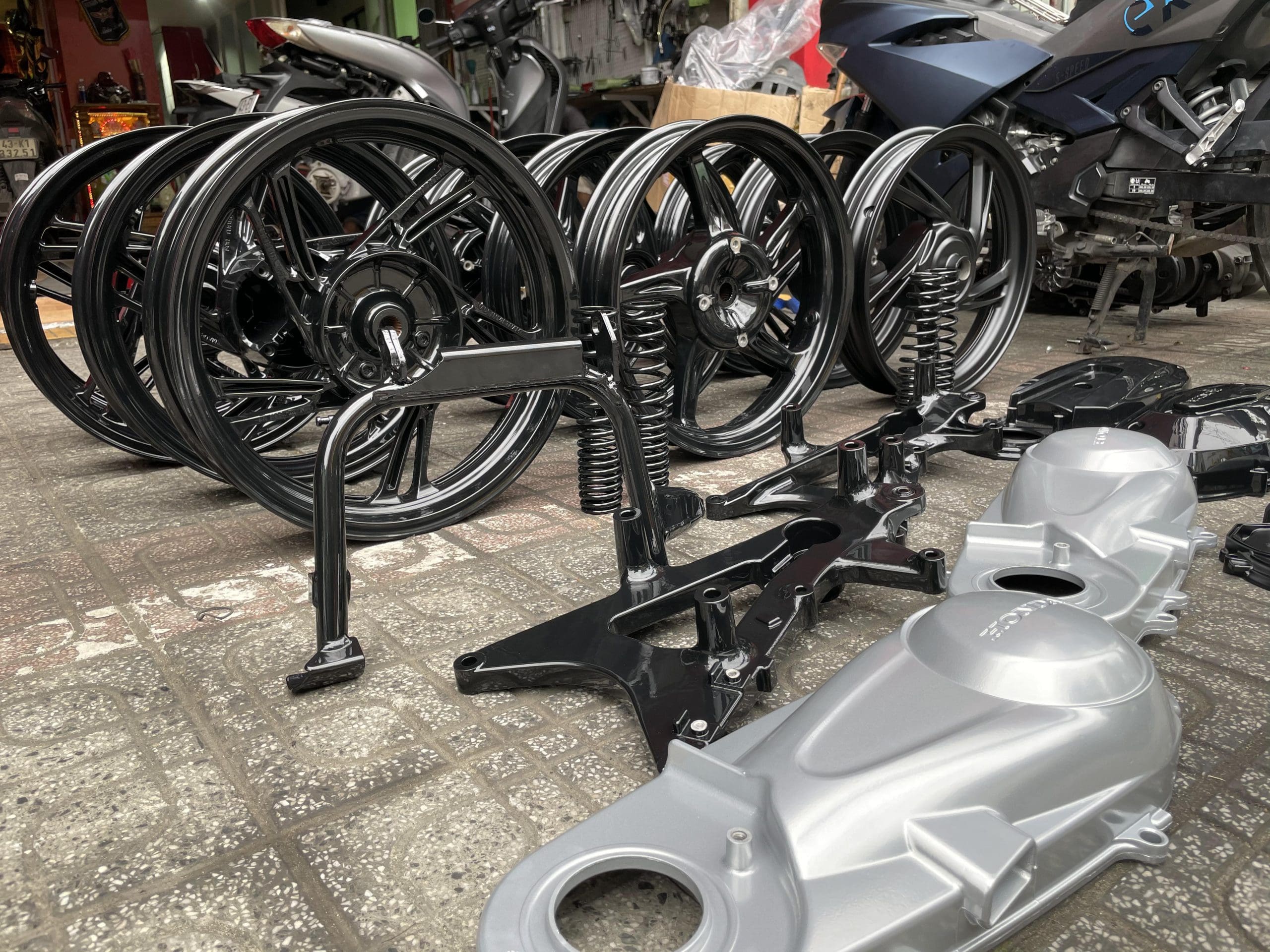 - Sơn tĩnh điện các chi tiết: Sơn tĩnh điện các chi tiết như mâm, phuộc, pát biển số,…