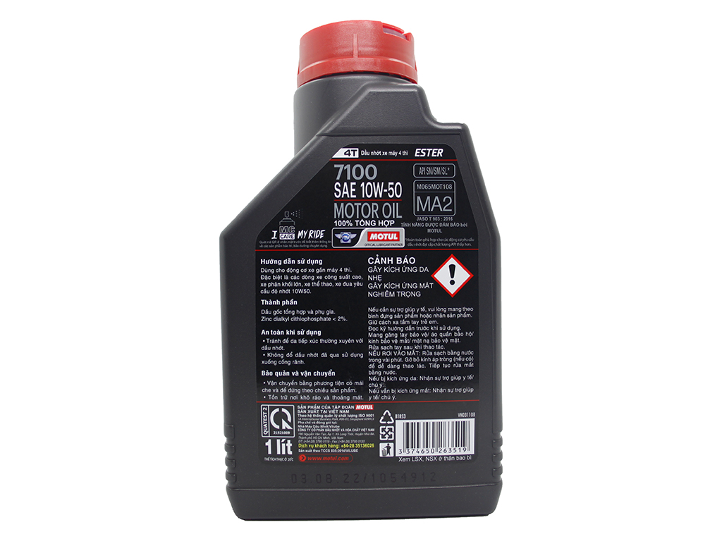 Nhớt Motul 7100 10W40 mặt sau