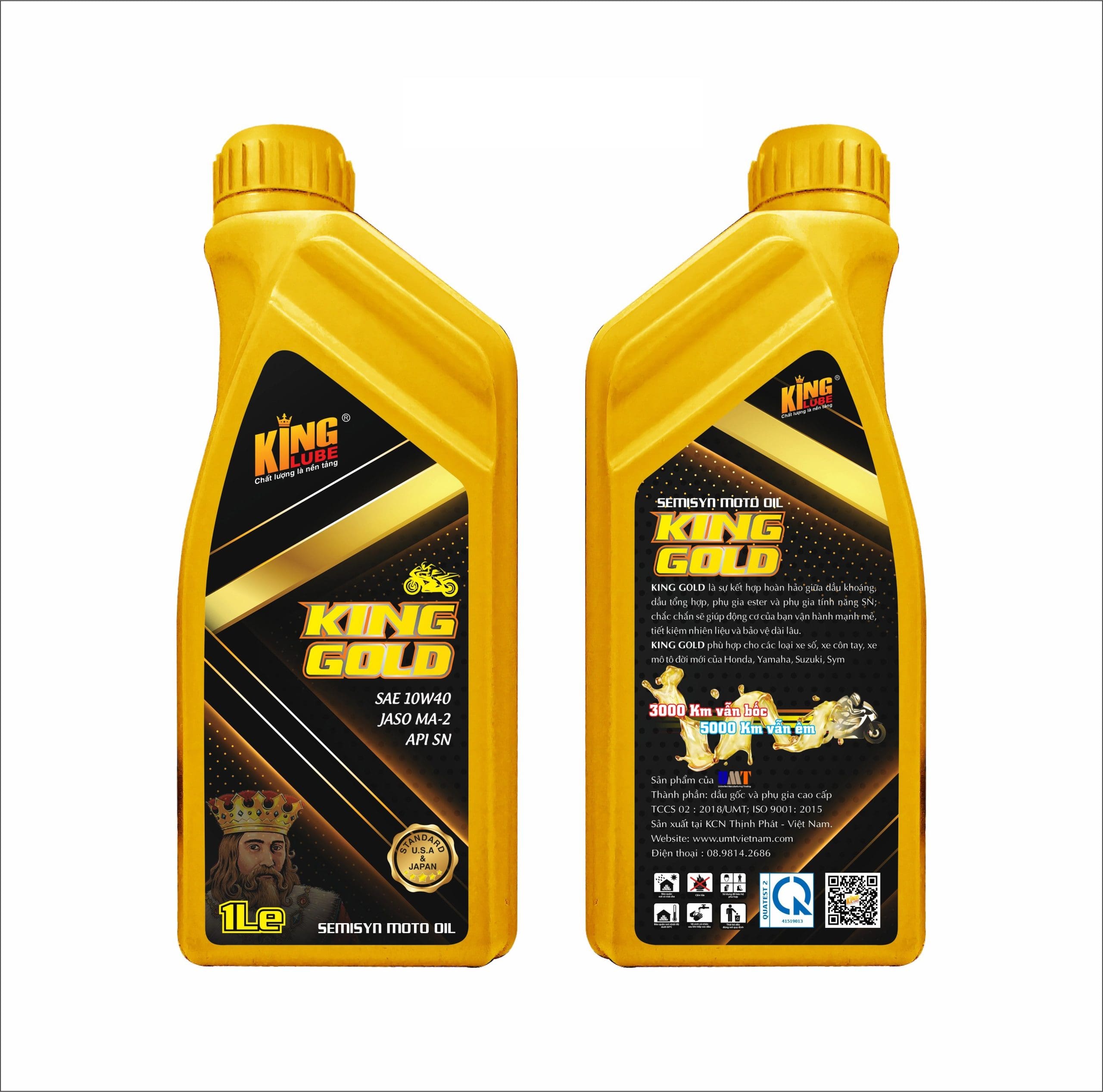- KING GOLD API SN – SAE 10W-40 – JASO MA-2: Sản phẩm này có khả năng làm sạch động cơ hiệu quả, kéo dài tuổi thọ của các chi tiết máy.