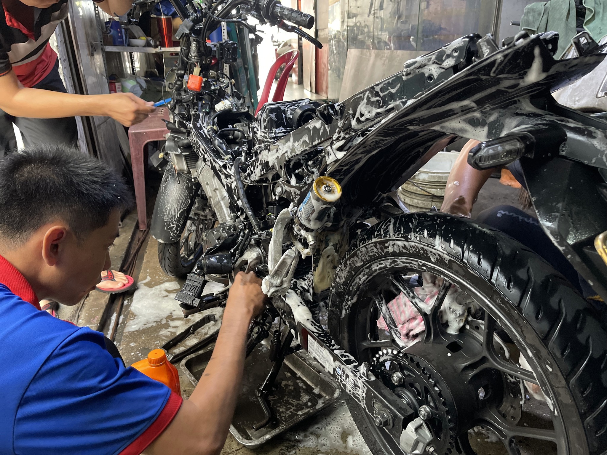 Rửa xe máy chi tiết, rửa thông thường mất bao lâu
